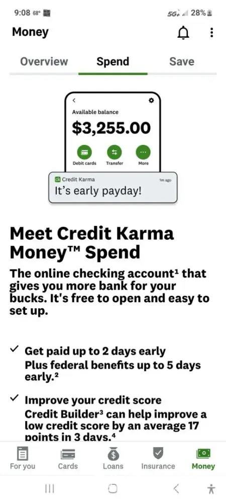 Credit Karma sent me two emails stating that my spend and savings accounts were closed. I contact their customer service multiple times. Through their useless chat and their barely useful phone support. They have stated that I should receive an email asking for documentation to verify my identity. In which I never received such an email asking for any sort of documents. After about 8 days they notify me that my accounts were closed. Of course with no explanation. They will spout about closing accounts for any reason. Which is fine but they could have at least gave me the option to pull my money out before they did that. After about the 4th time I called the customer support representative finally sent me the email I was supposed to get when my accounts were locked. But at that time the accounts were closed already. And since they locked my accounts and would not let me switch my linked account my money is completely gone since they are sending it to an old account that I had closed years ago. Overall it was my fault if I would of known they were not BBB credited I would of never had an account with them in the first place. And I will completely request that my credit karma account as a whole gets deleted once I get my money.