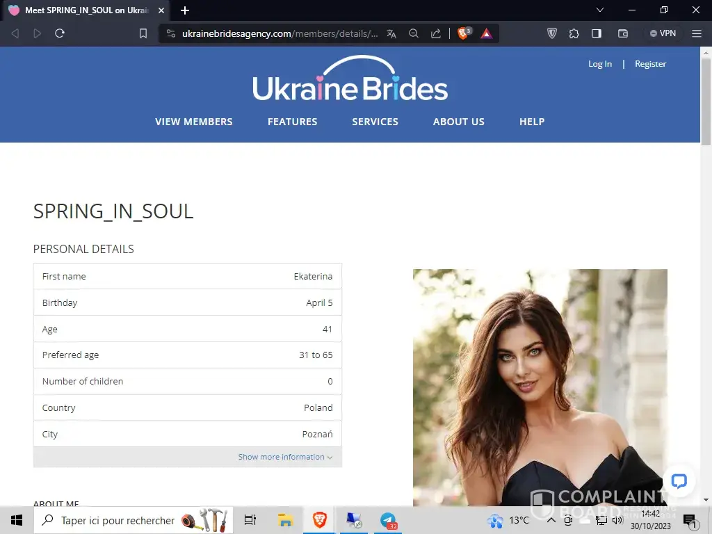 Read full complaintUkraineBridesAgency.com - Dating website