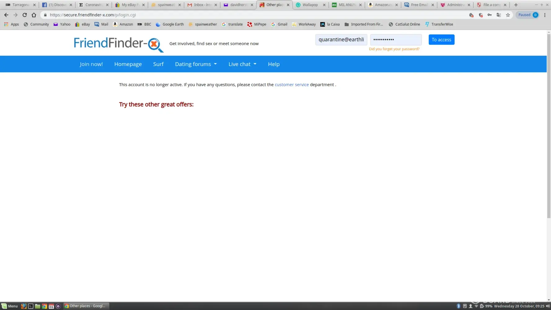 I signed up to FFX and paid for 3 month membership. Trying to sign in, all I get is: This account is no longer valid. I have tried to contact them internally on Support but have had no response. I have clearly stated the issues and asked for a refund. No response. I want a refund and all my data deleted.