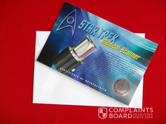 It's about getting the items I paid DStines for. Going on a year now. I never got my chess pieces and I am still waiting on my Cardiostimulator . My emails have been left unanswered. He was suspended from The Trek Prop Zone as of yesterday so now it's FRAUD.