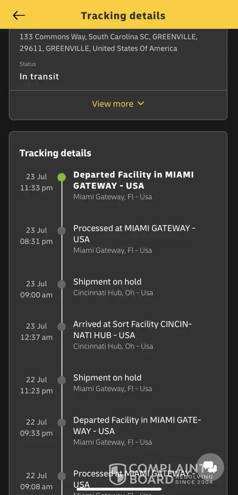 A shipment was sent from Argentina to be delivered on July 19th. As of today July 23rd the parcel is on limbo going back an forth from Miami to Cincinnati OH according to the tracking information. I contacted DHL customer service and they told me that the item will be delivered on July 22nd.