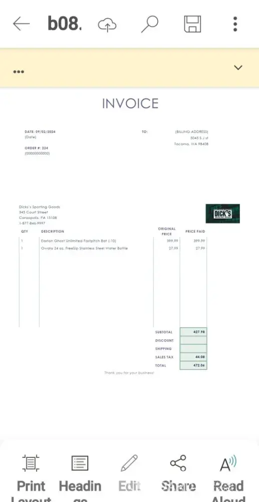 My daughter Easton ghost bat cracked, and we went to the store located in Tacoma Washington inside the mall last week and this Sunday 4/13 to ask for assistant. First time, my husband and my daughter tried to returned the bat and came home minutes after leaving and was told the store cannot do anything for us. Second on 4/13, I spoke with 1 sales rep and 2 managers requesting if they can provide me with a copy of the receipt so I can contact the manufacturing and request a refund. I was informed that their POS can only go back 90 days and there was nothing that they can do. I continued to ask for solutions, and one of the managers laughed out loud and so I asked her why are you laughing. "Do you think it is funny that a 12year old girls spent all her birthday money saving for this bat and for it to be broken in a few months and does not have a bat to play with during her sports tournaments, not everyone can afford a new $400 bat?" I told Dicks staff that we have spent a lot of money over the years for our 2 kids to play school, rec, and travel sports, and we are not trying to ask for a new bat since we were already told numerous times there is nothing they can do from the beginning but I continued to asked for more resolution. I asked for a number that I can call and or an email address to contact the GM of the property, but was told that they could not give that information out (didn't understand, since it was the GM and a work email?) My husband was upset, went to the car first, and then my 12 years left to returned to the car to cry. After 30 minutes of conversation, a secondary manager came in on the conversation. Have to admit, she tried to help gave us the number to the customers service line where they were able to send me a copy of my receipt within 5 minutes to my email once I got home. From there I was able to contact Easton company and have put in a order for bat exchange. I did not understand why it took two attempts to get answers and why we were treated that way. At this point, much faster result to order all future products needed for sports from the manufacturing themselves or to go through Amazon because Dicks Sporting goods have shown us that they do not care about helping the customers and is Ok with losing customers. Still have not received any communication from the GM from this location to discuss any of my recent concerns.