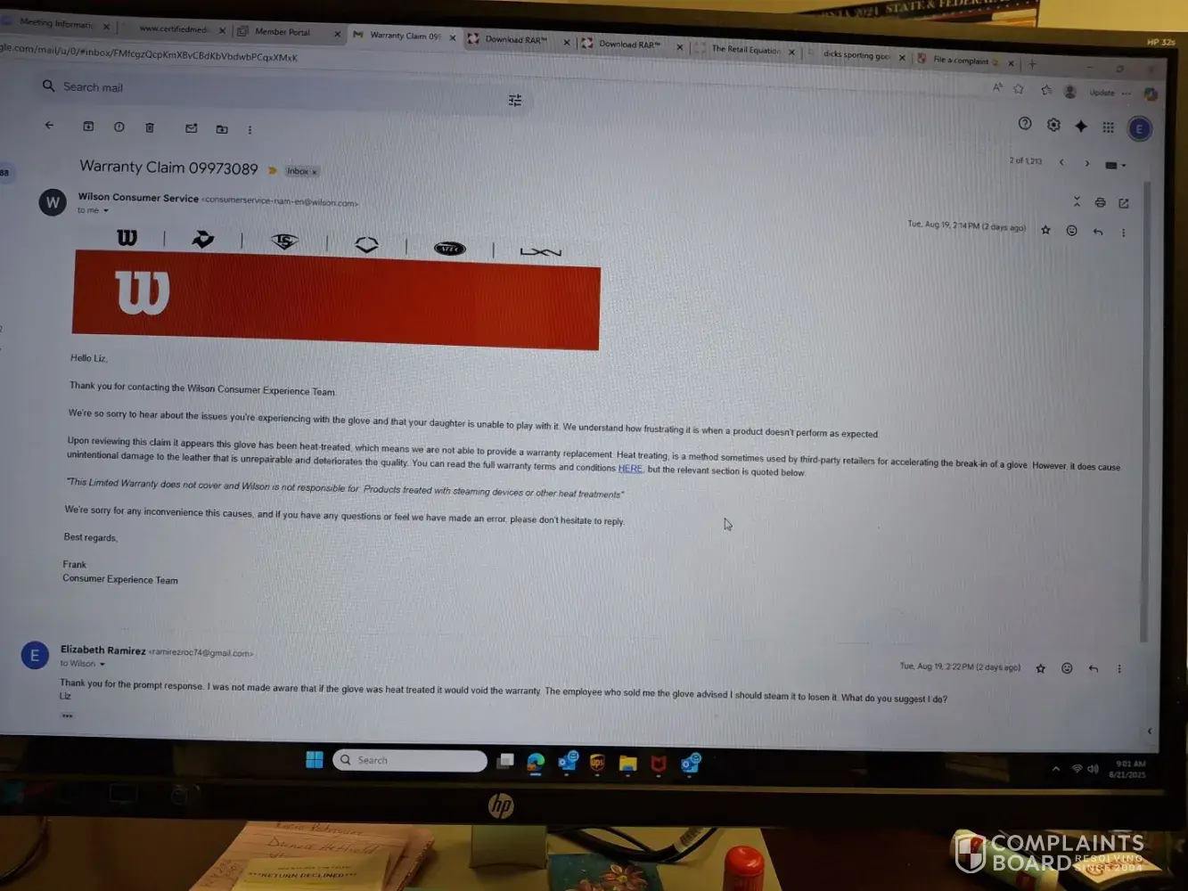 I purchased a Wilson A2000 softball 1st base glove and insurance. I purchased it in March 2025 and since then we haven't been able to soften the leather and the glove is too stiff and hard to play with. The glove was steamed and per Wilson it shouldn't have been. Both Asurion and Wilson have denied the claims submitted. My daughter needs a glove.