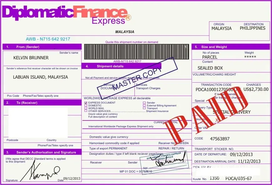 Attached is the FAKE airway bill!