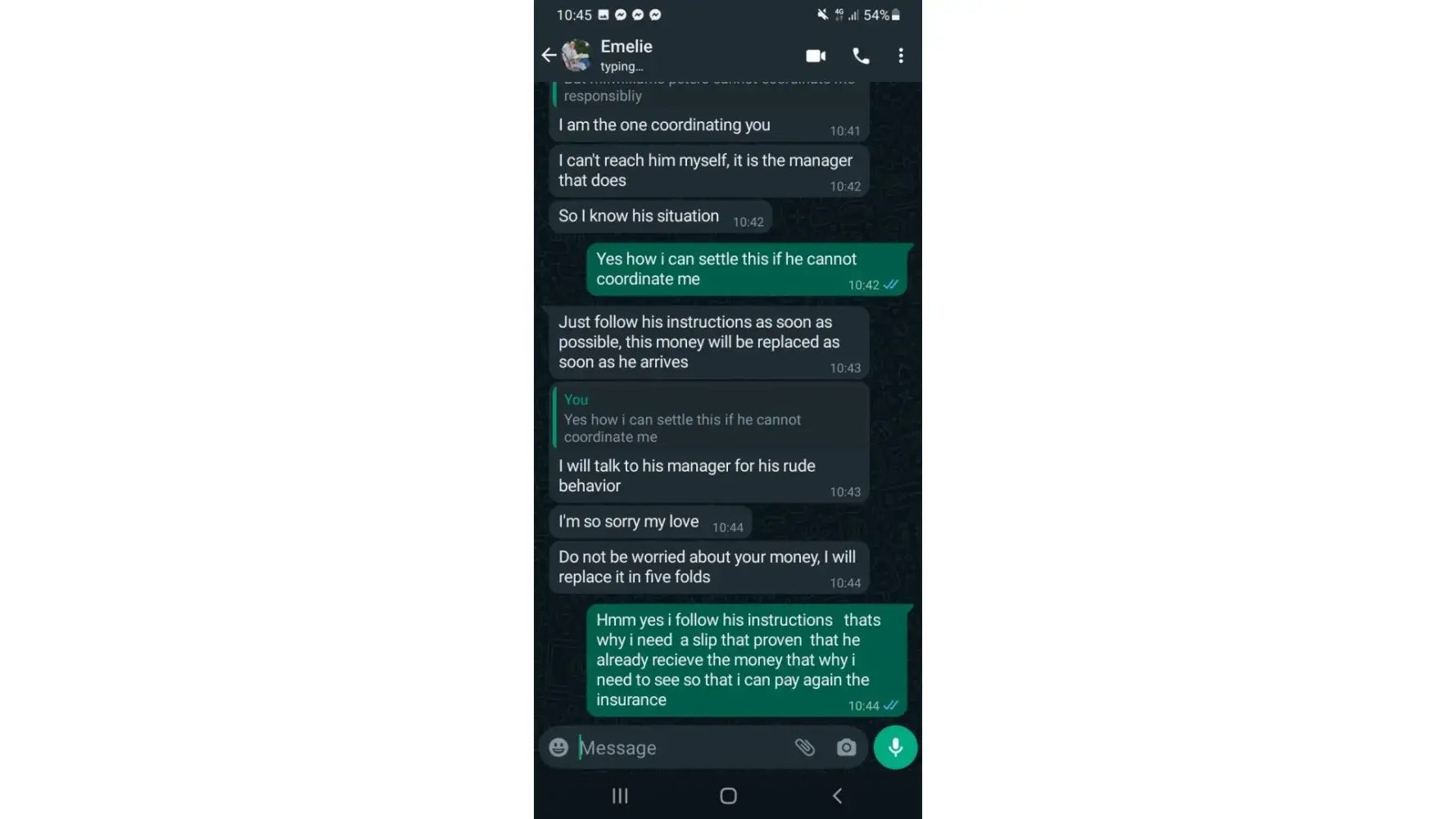 Yes me too also. Ako nman Ngayon klang na laman na scammer pala, ng na basa ko tong post mo kabayan. Ng una dko akalain na scammer kasi nag video call pa kmi talagang may sakit sya,sguro Dyan sila kumukuha ng pang pang bayad nila sa hospital.gina gawa nila mang scamm ng mga tao..buti wlaa akong pera na pang bayad sa costume fee. Kaya dla aq na perahan..sa inyo kabayan sayang naman..d natin kasi akalain na scammer pala kasi magaling mang arti lalo na ai emilie may sakit na nga ng scam pa .