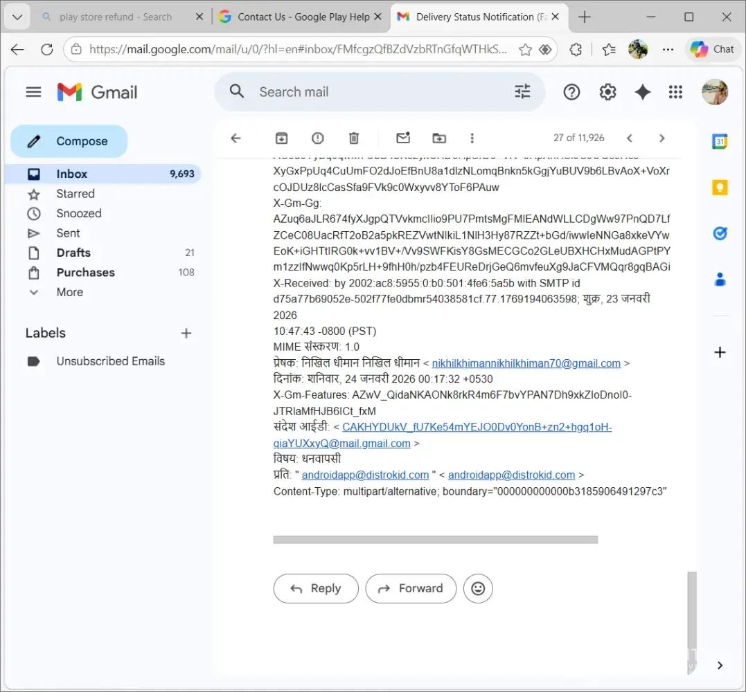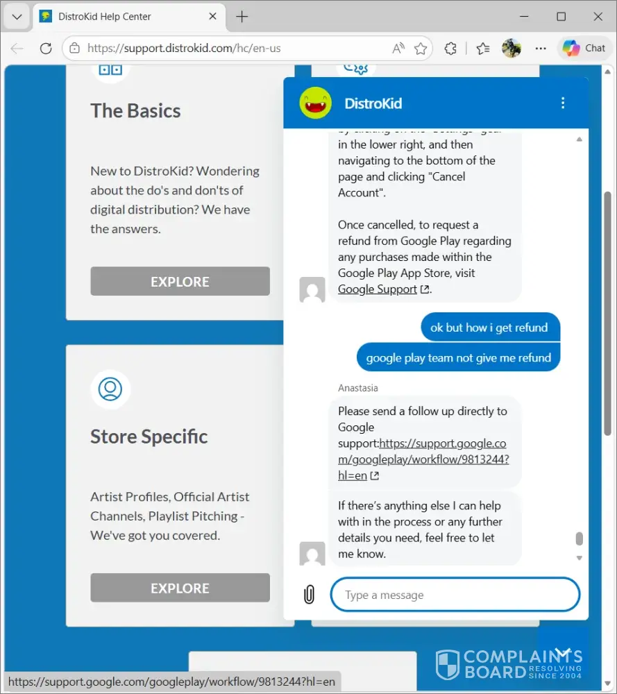 Hi DistroKid Support, I originally subscribed to the Musician plan ($24.99/year) on January 10, 2026. On January 22, 2026, I upgraded to Musician Plus ($49.99/year) following advice from your support agent (named Jia and others). The agents told me to cancel the previous Musician subscription in Google Play and request a refund there, which I did. Google...