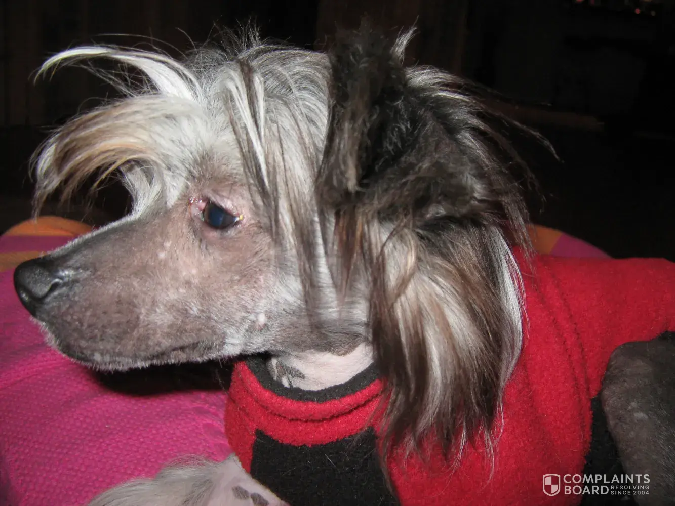 I purchased a female Hairy Hairless Chinese Crested online from Kitockee for $700. When I met them to pick her up, she had green gunk in her eyes and they were very swollen and infected. I felt so sorry for her I took her anyway thinking it might be just a cold. The vet determiend she suffered from severe enviornonmental allergies and it did not happen...