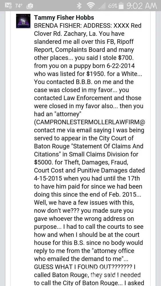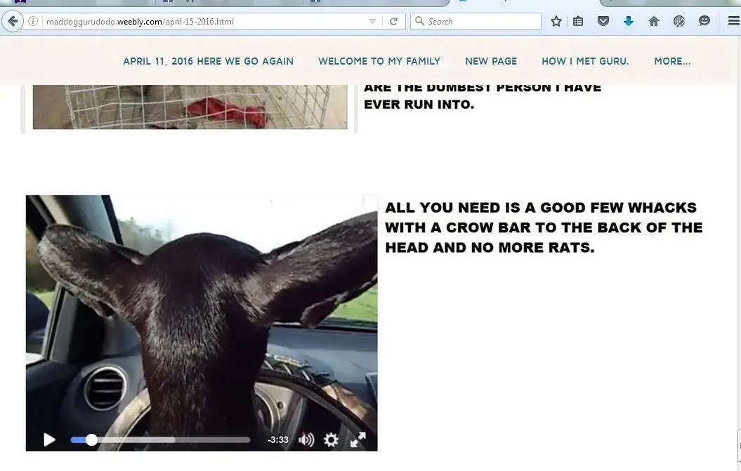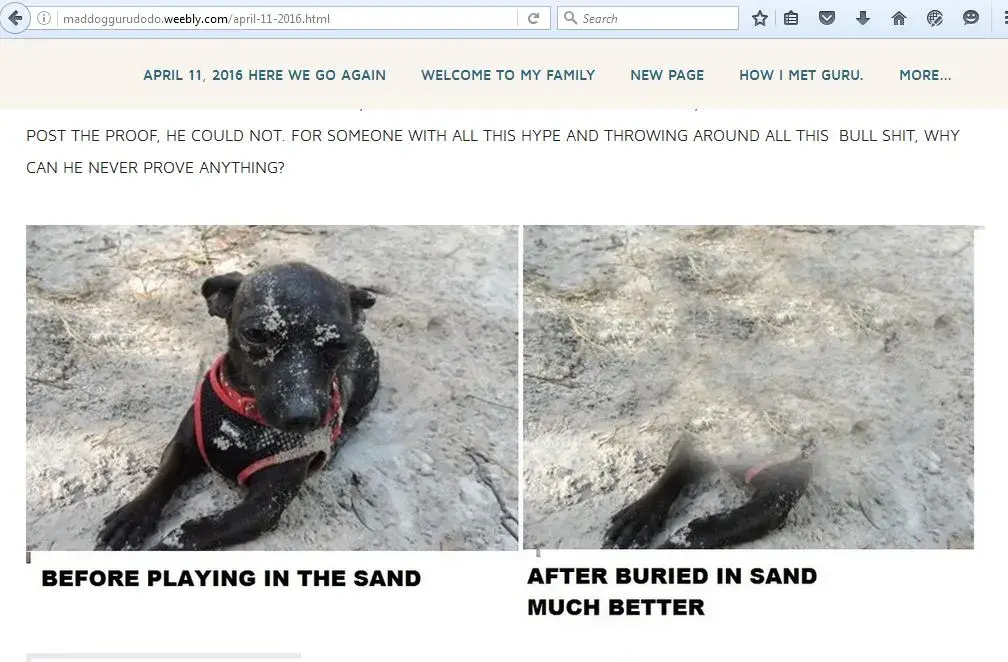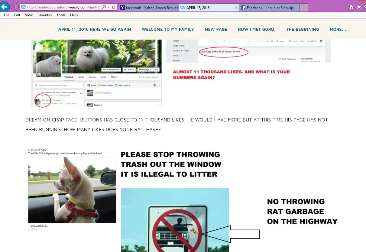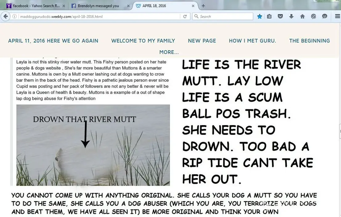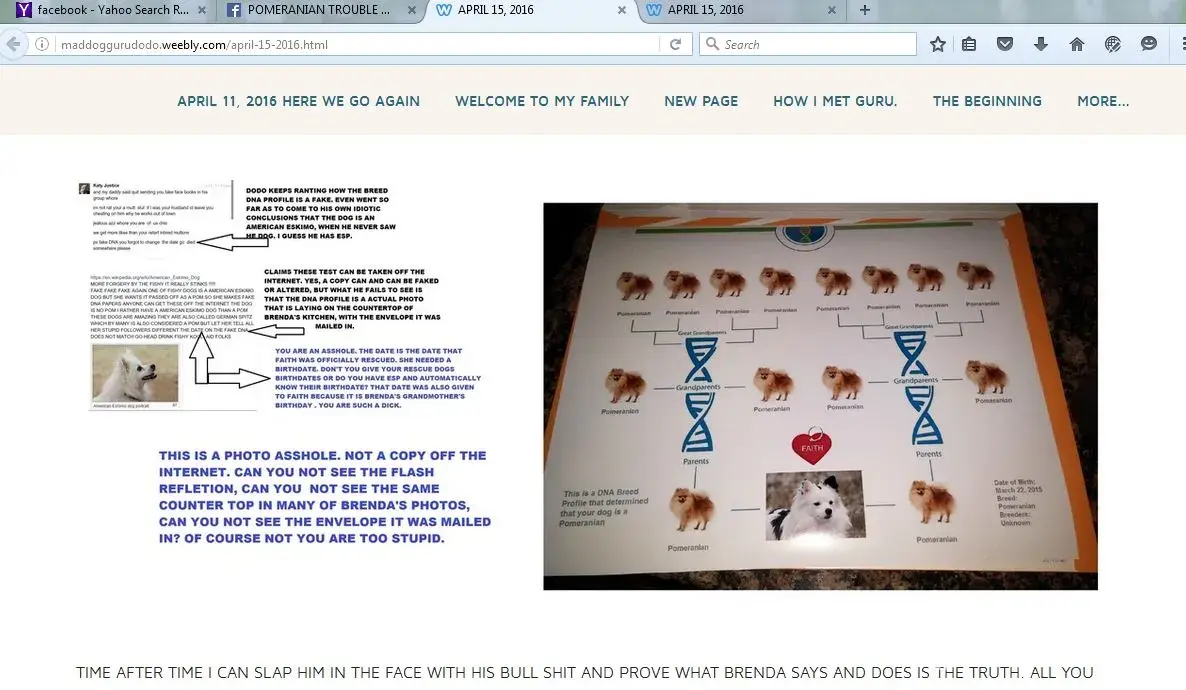 Brenda Fisher owner of Cloud 9 Pomeranians from Goodman Mississippi, created a web page on weebly maddoggurudodo suggesting visual and verbal harm on Dogs, Brenda Fisher as we all no her on Facebook is her alias name ( real name unknown) is a very very evil Extreme Master Manipulating Narcissistic Sociopath Liar and Scammer. Brenda Fisher created a page...