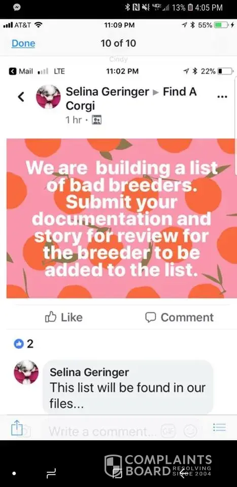 Selina geringer (aka walter bisby and mabel funk) is a true scam artist to the bone. She does not represent the vast majority of great corgi breeders. She sells double merle dogs, doesn't know the father of her litters, sells puppies that are sick, sells puppies that are genetically disfigured (hydro pups). She cons people that are out of state and make...