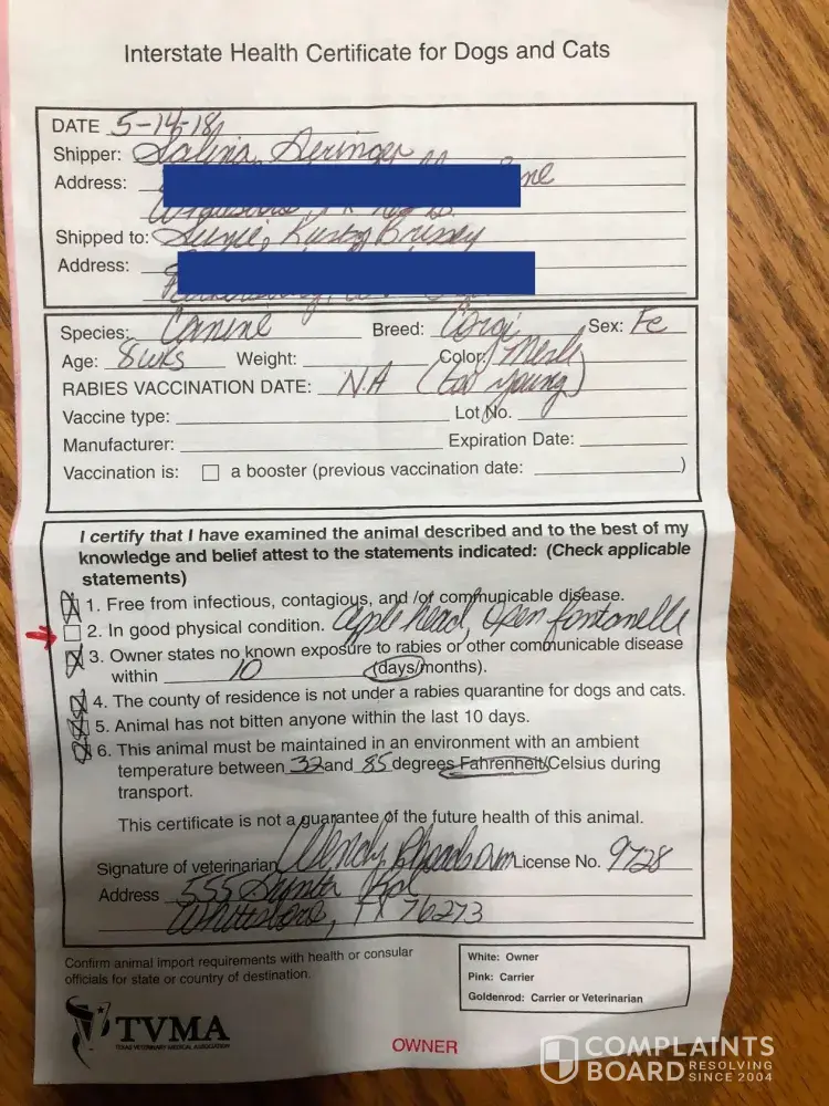 I went and picked a puppy out in dec couldn't have for two weeks at the house little concerned with odor in the house but excited purchased everything and got home ready for arrival of pup week before picking up I messaged breeder that we are excited and all set for are new arrival get a phone call after that the pup is not healthy with heart condition and...