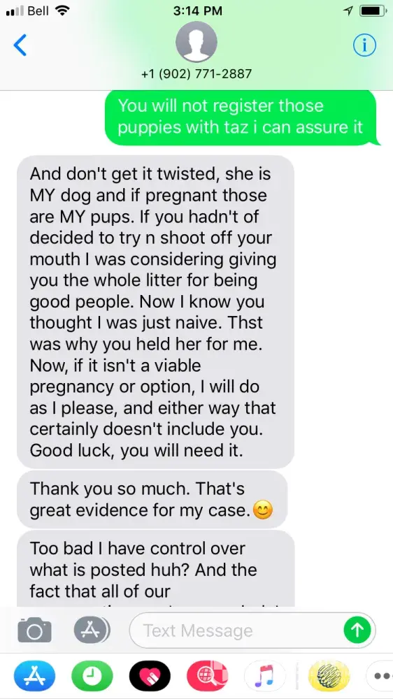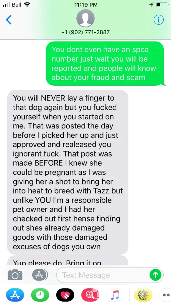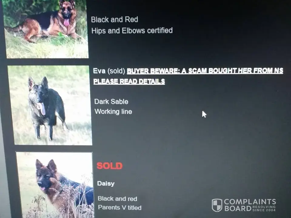 I am a fairly new and very small time breeder of working line g.S. D. I recently drove to new brunswick I noticed a kijiji ad and called about a sable female with breeding rights so after speaking with a supposed breeder over the phone asking if she was utd on needles and to make sure she was not fixed nor had pups before or had been exposed too any male...
