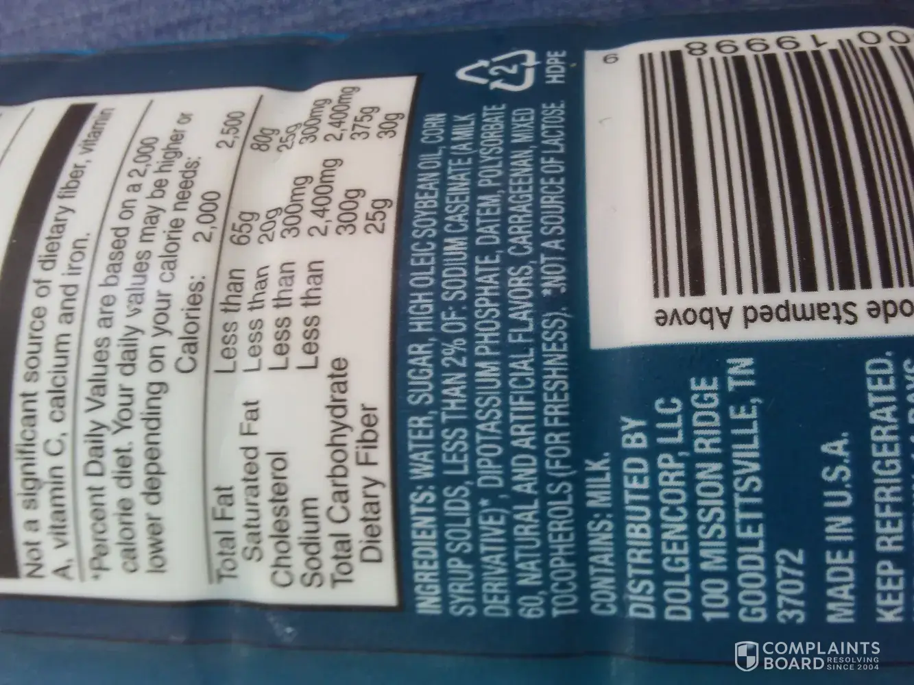 I purchased this because my grand daughter is allergic to milk products. This is not ok. Non dairy and lactose FREE should mean just that! I called dollar General and they said it's not their problem and refused to let me return it. I would like to inquire about initiating a recall for this product.