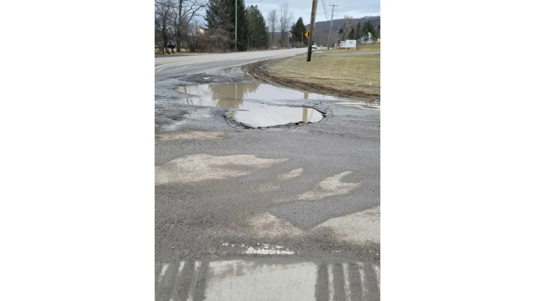 I had to replace a tire as a result of a huge pothole on the exit side of the ramp. Tire went flat as a result of a rip in the sidewall as I was trying to go around the pothole, Actually had to replace 2 tires because of inblance but would like re-imbursement for the one tire at $125.00. This has been an ongoing issue for over a year and as of yet has not been fixed. THis is a dangerous situation. The pothole is at least 6 feet wide and at lest 6 inches deep in the middle. Everyone has to stop before the pothole, check for traffic then exit on the entrance lane.