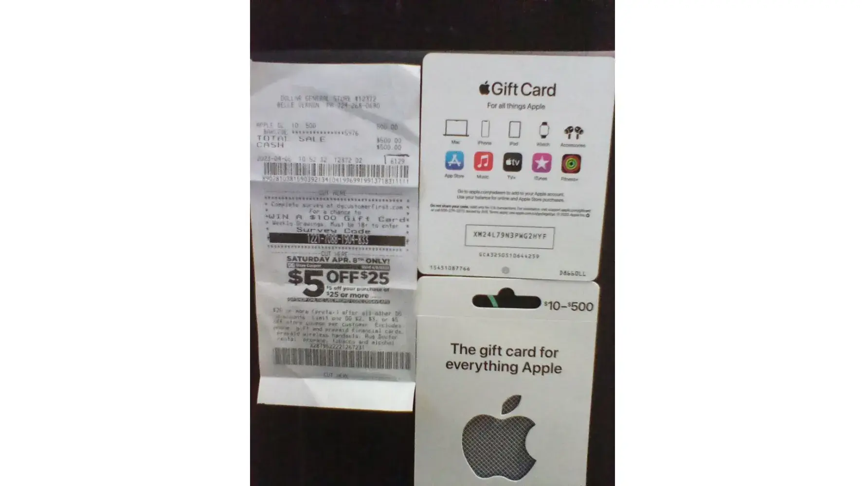 On Monday April 4,2023 I want to the Dollar General store #12372 to buy an Apple Gift Card. I came straight home after getting it and sent the picture of the card to the receiver and with in a few minutes they got back to me and told me this card had already been REDEEMED ! So then I called the store and I was told they couldn't do anything to help me after paying $500 for it so I was very upset when I was told that. So next I called the phone number on the back of the Apple card I has and I was told that someone had stolen the Serial number on the back of the package and after checking the Serial number on the back of the card they matched. So I then called the Dollar General Store Headquarters number for customer service. And as of today its Friday and this issue still has not been resolved and me fully refunded my $500. I have called everyday since Monday and I have been told something different each day. And today I was given a new case number for this problem and told the district manager would call me in 3 to 4 hours and I still have not heard from this lady. What kind of game are you playing with me after 5 days ? I am very upset over this and I do expect my money fully refunded for this Bad Card that had been scammed !