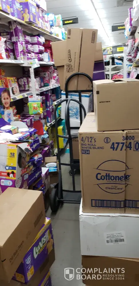 This Dollar General is absolutely disgusting. The employee's all stand around and gossip with each other while there is one person on the register checking people out while the other 5 employees stare at us customers lined up literally to the back of the store. I NEVER see any one stocking shelves and all the Isles are full of UBoats. You can't even get to what products are even on the shelves. They NEVER have any thing on the shelves. We "the customer " have to dig through the boxes on the uboats to try to find what we want. I live on the same street as this store yet I go all the way to the next town because i HATE going into this store and so does everyone else i know. The employee's are always UNPROFESSIONAL and rude. Below I have provided some pictures of how this store looks on a daily basis.