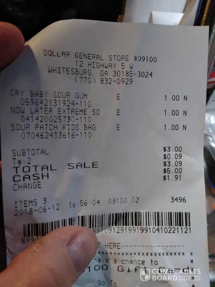 Dollar General it's not the product: cashier on duty 6/16/2018