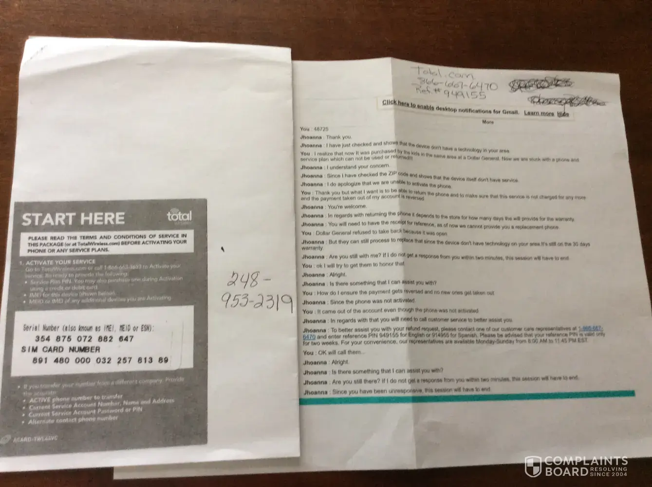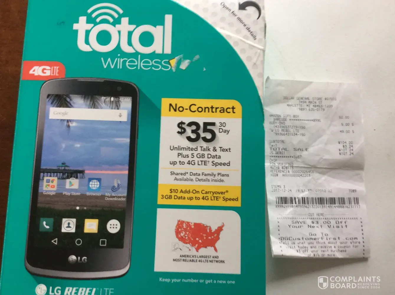 As you can see By the attached pictures I contacted Total.com as well as Dollar General who refused to refund the phone.
