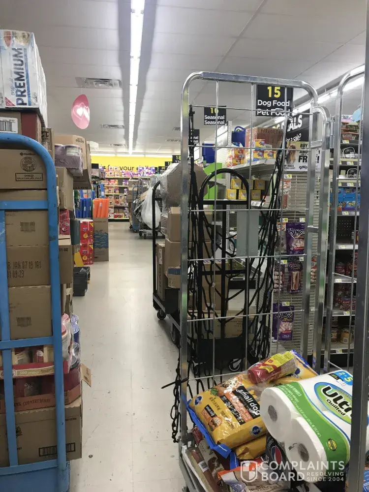 The photos tell the story. I visited this store on March 21, 2018. I feel really sorry for the employees trying to work in this dump, you can't even move in this place. It looks like a tornado ripped through here. It's been going down hill for a few months, I was hoping it would get better. I'm taking my money to the Family Dollar down the street, it's immaculate!