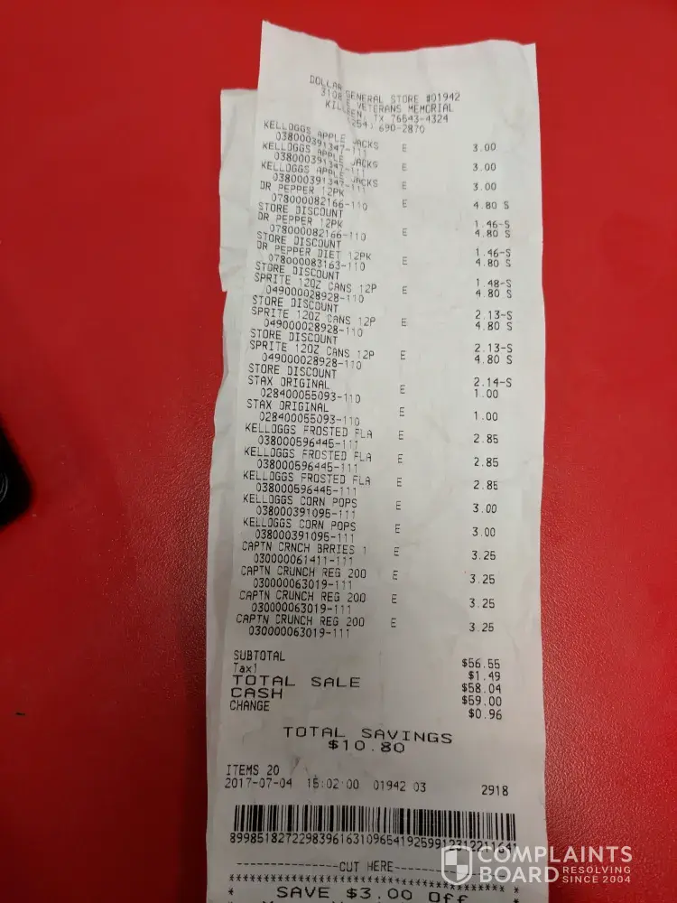 Today, july 04, 2017. I went to the dollar general store #[protected] e veterans memorial, killeen, tx [protected])