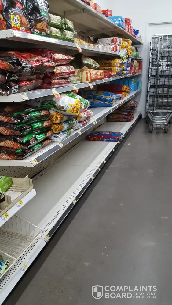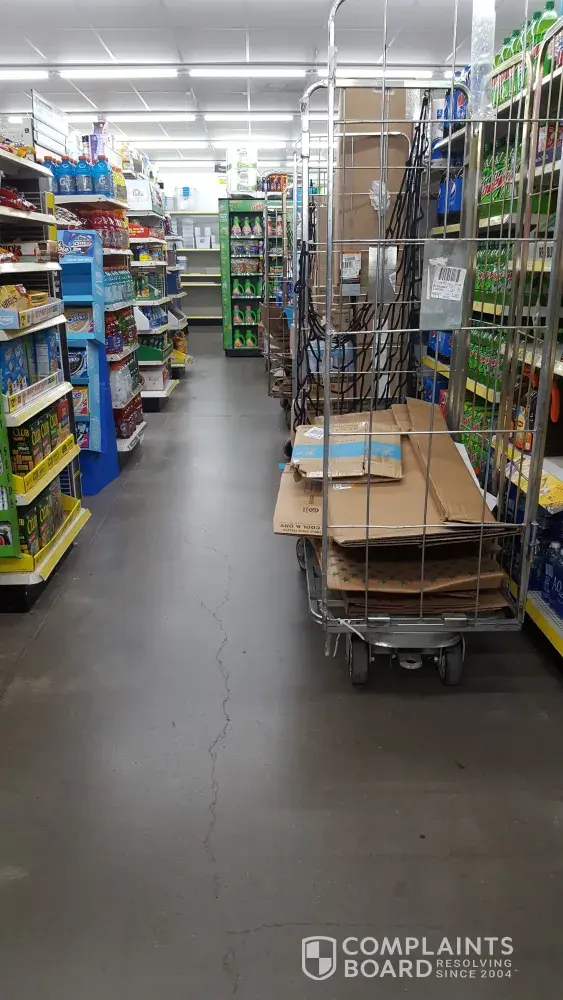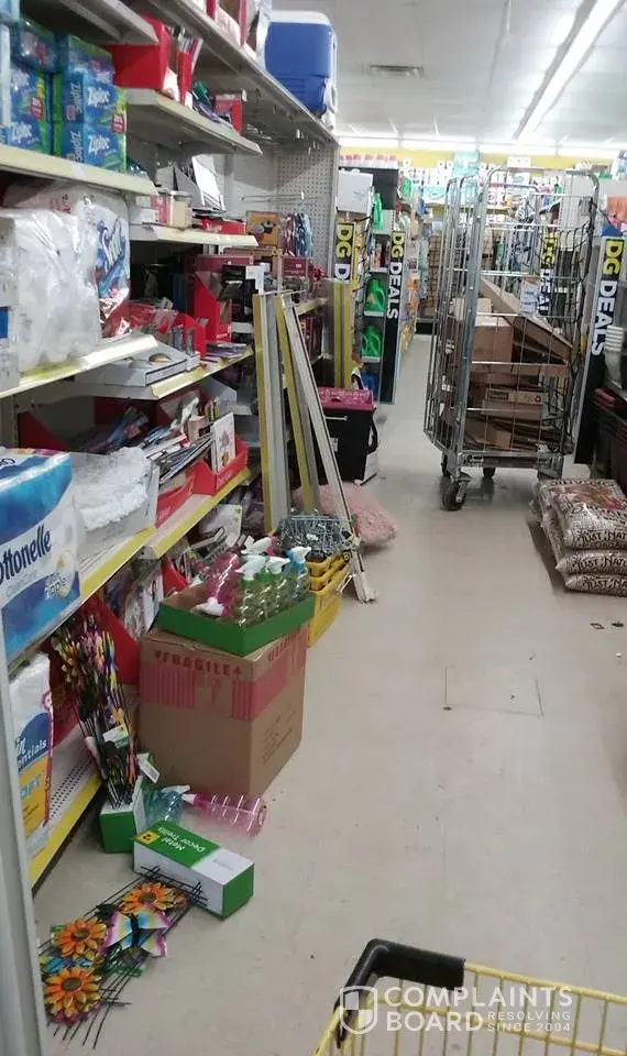 The store is a mess! It has been for sometime now and for a short time (very short) it slightly improved. There is no product on the shelves (I have pictures), carts with containers containing stock sitting throughout the aisles in the store posing a fire hazard (again I have pictures). It seems the product is put out on the shelves but the many empty shelves remain. There hasnt been batteries or medicine supply for months! Limited dog food selection, cat litter, detergent, light bulbs, vehicle oil and so on and so forth. The Family Dollar just a mile away always has plenty of most every product but for alot of people it is less convenient and closes earlier. At this point DG is inconvenient since you go for a few things and the store only has one of what you need. I have worked retail before and this would not be tolerated! I see complaints on fb all the time about our local DG. I work a full time job 5 days a week and have entertained the thought of applying to just show the emoloyees there how to get stuff done. But I cannot fully blame them as their higher ups hold just as much responsibility in this matter. Its a shame this store is in such a shape. I would appreciate a follow up phone call as to how this matter will be addressed. Thank you.