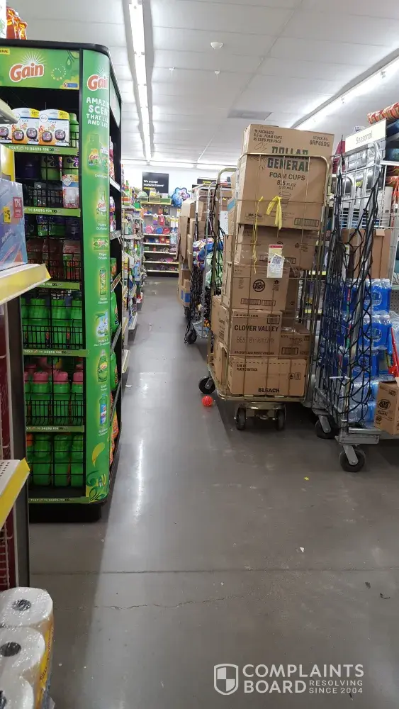 This Dollar General Store is absolutely awful to shop in! I normally drive to another county, when this one is just across the road from me, but I didn't feel well yesterday, so I thought I would try one more time. BUT, LOOK WHAT I FOUND. SO FRUSTRATING TRYING TO SHOP IN THIS MESS, WHEN YOU CAN'T EVEN GET DOWN THE ISLES! WHAT IS UP WITH THIS STORE? Even if it's truck day, they should wait till after customer hours of shopping. I worked in retail before, and was not allowed to get in the customer's way. THIS IS RIDICULOUS!
