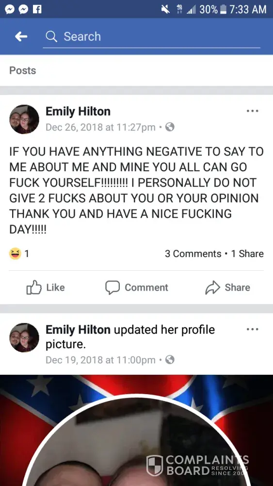 Read full complaintemily hilton manager who put customers on fb and cuss to customers