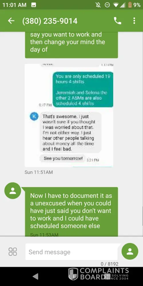 My name is Kristine Brecht. I recently worked at the Galloway, Ohio Dollar Tree under the management of Joseph. On Sunday, January 10, 2021 I had sent a text to Joseph that I was not able to make it to work due to personal reasons. One reason I will keep to myself at this time, for it is infact personal but the other was I was waiting on the results of my...