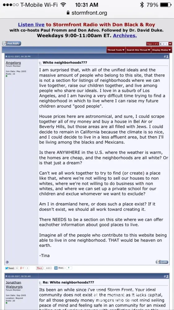 Much scarier to me is the Aryan Unity forums Tina posts on.