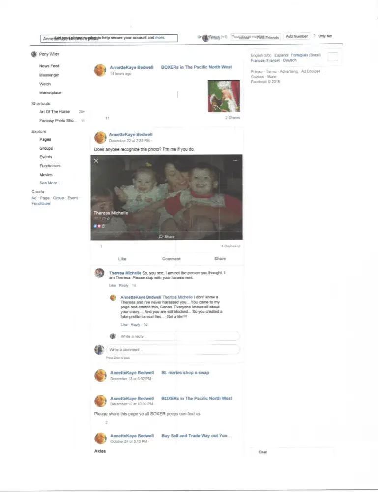 #ANNETTEKAYE BEDWELL has blamed us for another FB profile. I did not do this and my name came up on her posts AGAIN. This is a classic case of paranoia and harassment. But I guess that is why we won the judgement against her. See following. We are not this person and do not need to be. We have no care for her or her world.