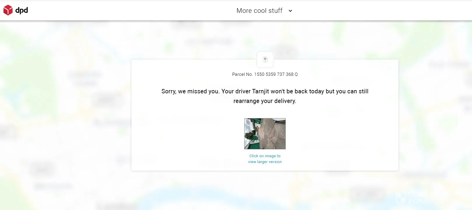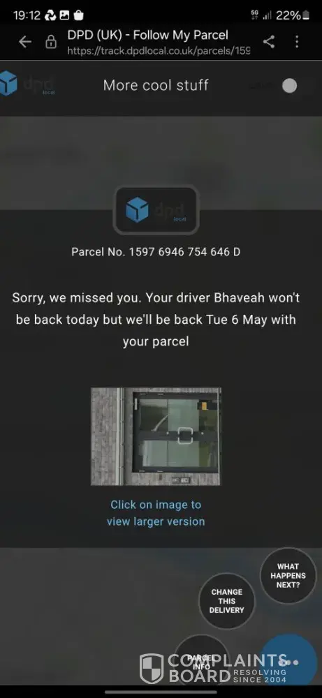 Yesterday I waited in for a delivery all day, only to get a message that the driver had called with no one at home around 5.30 pm. the photos he uploaded was not of my house (it was a Victorian Street property and I live in a 1970s building). I have tried to contact DPD but am sent around on a doom loop on the website and "customer service" (dis-service) number.