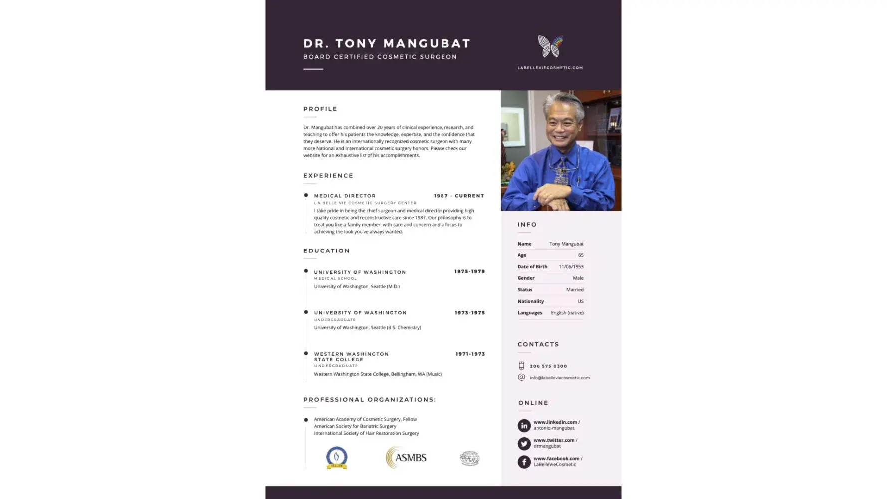 “Nella†says Mangubat “had 2 typos on his resume over 35 yearsâ€. I guess “she†hasn’t checked Mangubat’s online resume since 2019. Since 2019, Mangubat has been blatantly Lying on his resume, claiming he worked for his Seattle clinic La Belle Vie Cosmetic since 1987. Anyone can verify this is a 100% Lie because Mangubat didn’t receive his Washington State medical license until Sept 29, 1994, 7 years later. So if Mangubat were with La Belle Vie since 1987, he was doing something Illegal, i.e., practicing medicine Without a license from 1987 – 1994!