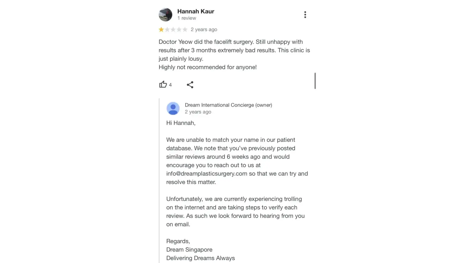 Dream Clinic - They just keep trying to bury their genuine, negative reviews with (clearly) fake ones and have renamed their business listing name to concierge. Strange how they brand themselves as a Korean-ish clinic but cant uphold their korea clinic standards. Overpromises from time to time but cannot deliver.