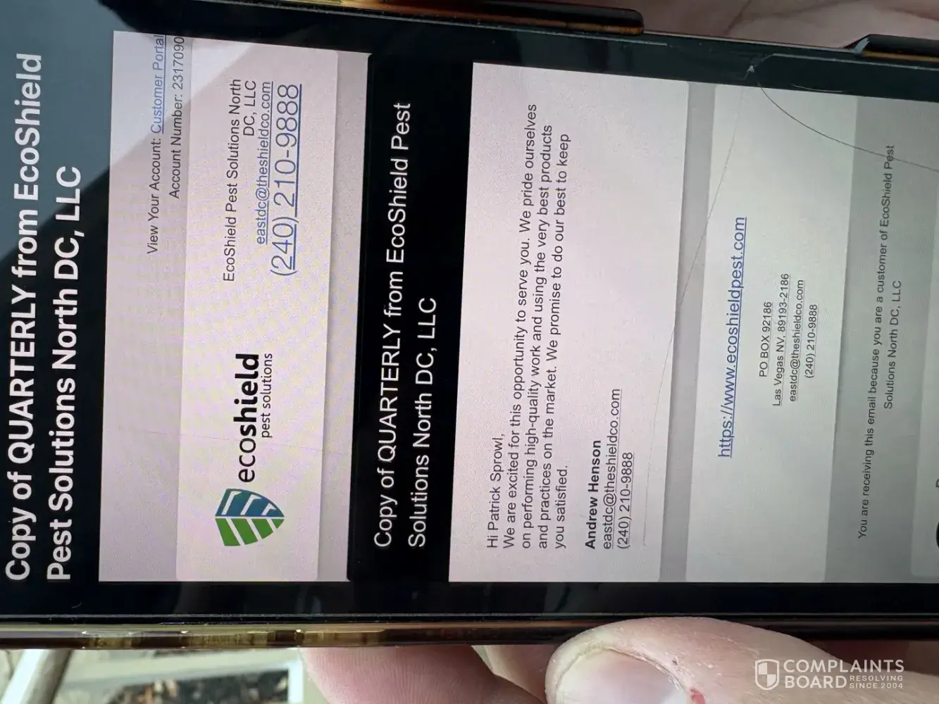 However, to my dismay, the same representative was sent back to my home just months later. At that point, I decided that I would no longer continue service with EcoShield due to their poor service, empty promises, and, most importantly, the lack of care or acknowledgement shown by their management. Since then, the company has become very aggressive. I have received sixteen phone calls within one hour, all wanting to know why I decided to discontinue the service. The following day, an EcoShield representative showed up at my door without any prior scheduling and stayed for an unsettling amount of time. I have tried to contact the company over twelve times without receiving any responses, aside from the repeated invoices they keep sending, which further confirms my belief that their only concern is money, and they are willing to go to any length to get it.