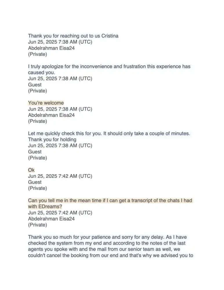 Anytime I had a question or needed any kind of help, an eDreams representative always made sure to help me and reassure my bookings were good.