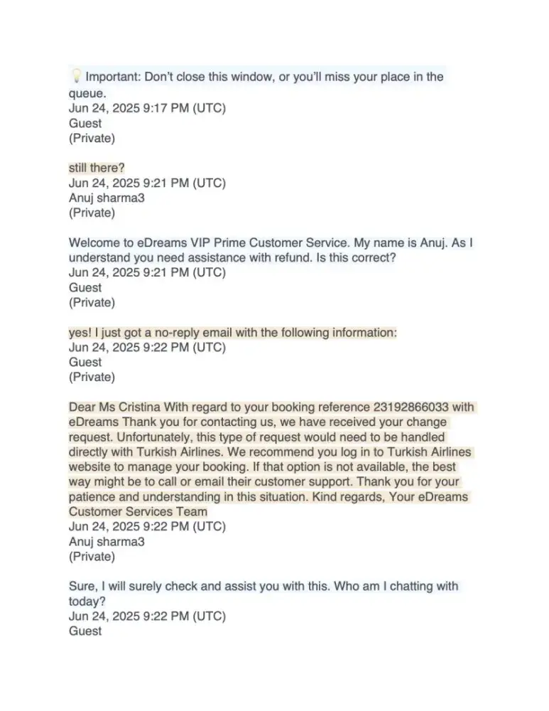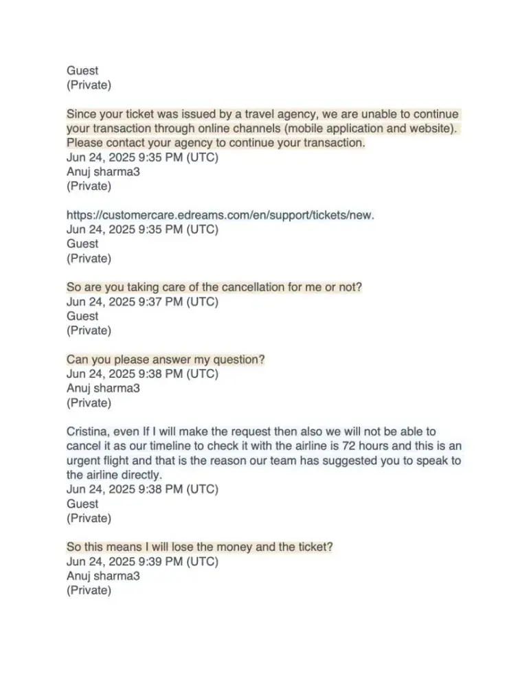 This was an absolute nightmare from start to finish. Everything about eDreams is bad: ⌠Call center: useless, unreachable, or agents give wrong information ⌠Chat service: slow, automated replies, no real help ⌠Refund process: terrible, confusing, and feels intentionally delayed ⌠Transparency: hidden charges and misleading “Primeâ€...