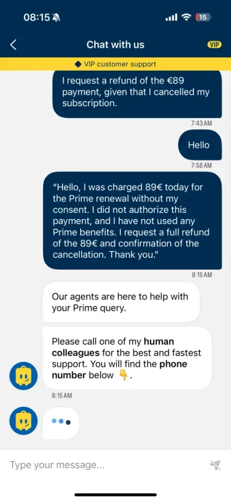 I was charged 89€ by eDreams for a Prime Membership renewal that I did NOT authorize.