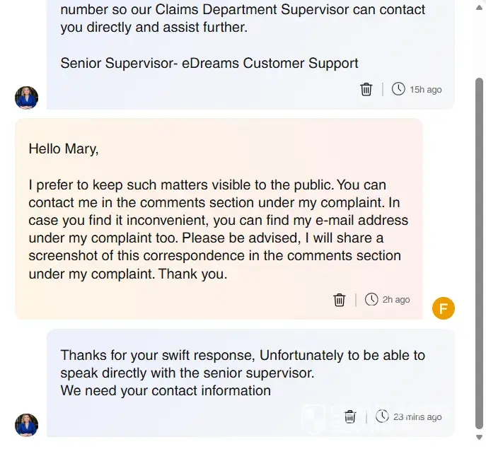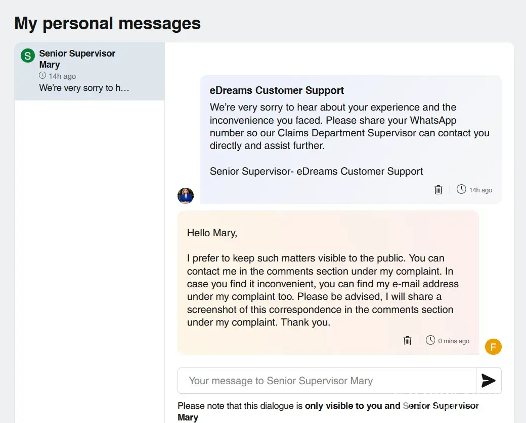 A person who presented herself as a Senior Supervisor Mary has contacted me after 4 months since I have published my complaint, asking for my WhatsApp number so their "Claims Department Supervisor can contact me directly and assist further".