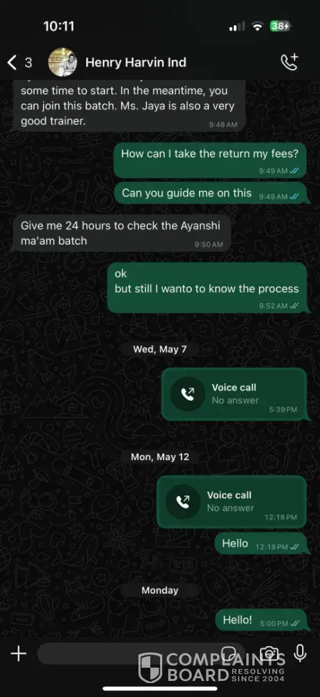 I paid my fees abound 1 and half month ago and the relationship manager informed me $400. Then he told me $600. But I only pay $400. After paying my fees without attaining any lectures I asked for fees return but no one responding. They promised me a batch with particular faculty at particular time. They lied to me about that. Then they not assigned any...