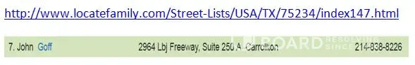 John C Golfis is using the false identity "John Goff" to transact business from Dallas County, Texas. By example, John C Golfis used "John Goff" to register the published phone number [protected] and to register the following website domains: 1. TEXASINSTITUTEOFTECHNOLOGY.COM 2. INSTITUTEOFIMAGERYANDARTS.COM 3. DRONEINSTITUTION.COM LocateFamily.com...