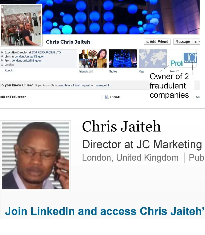 Hi guys CHRIS JAITEH is a scam artist, he has 2 companies in his name: http://www.jcmr.co.uk - JCM Resourcing - [protected] or [protected] http://www.protocaltraining.com - Protocal Training - [protected] or [protected] You will notice the number on both sites are the same but neither of them have a full address. He is scamming people with fake training and...