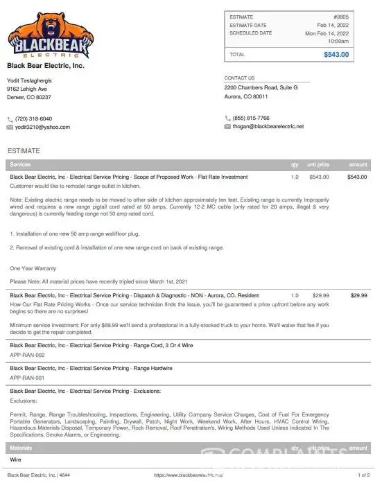 Black Bear Electric harassed me over someone else's charges. Black Bear Electric were to have shown up for an estimate on 2/18/22 from between 830am to 1030am. By 1023am Black Bear had still not arrived and I had another Electrician scheduled afterwards for a 2nd opinion so I text Black Bear back at [protected] and canceled because the technicians never...