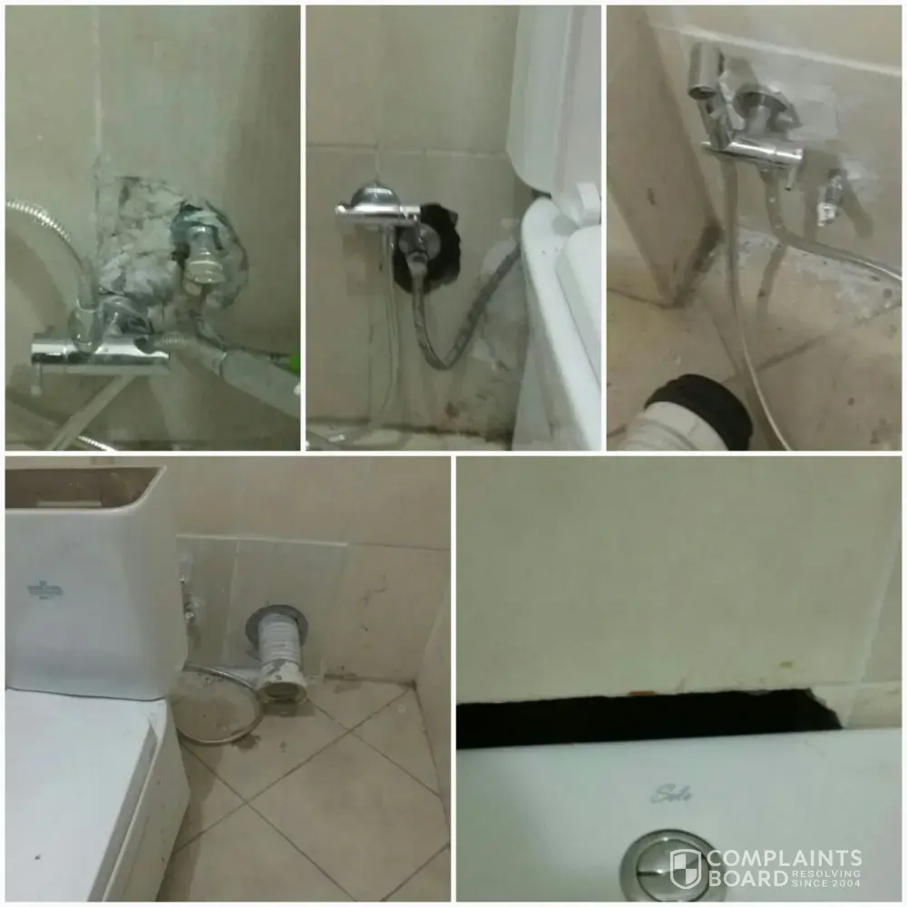 I had 16 leaking toilets in a hotel. This guy came in and chopped all 16 walls in one go instead of reparing 2 toilets at a time. When he was done, very poor workmanship and finish, it still leaked. He came in and put putty to stop the leak. He refused to give me a guarantee of 6 months. I paid 8500 only to have it all redone by someone else. shocking . These pics are his finished product according to him.