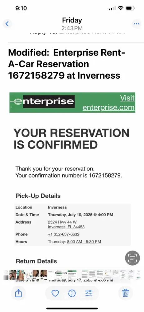 On March 11, 2025, my husband and I each made a reservation for a mini van at the Inverness, Florida office to transport family to Disney World. A week before the family was coming, the office called and said the minivans we rented were recalled and they were not sure if there was going to be availability by the rental date. I called them almost every day...