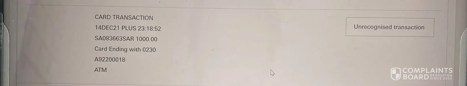 Attached is my bank statement where you can clearly see I was debited 1000SAR.