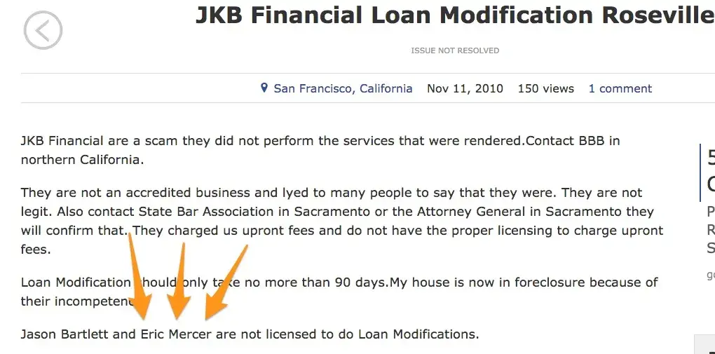 As I remember Eric Mercer did loan modifications and isn't somebody you should trust.