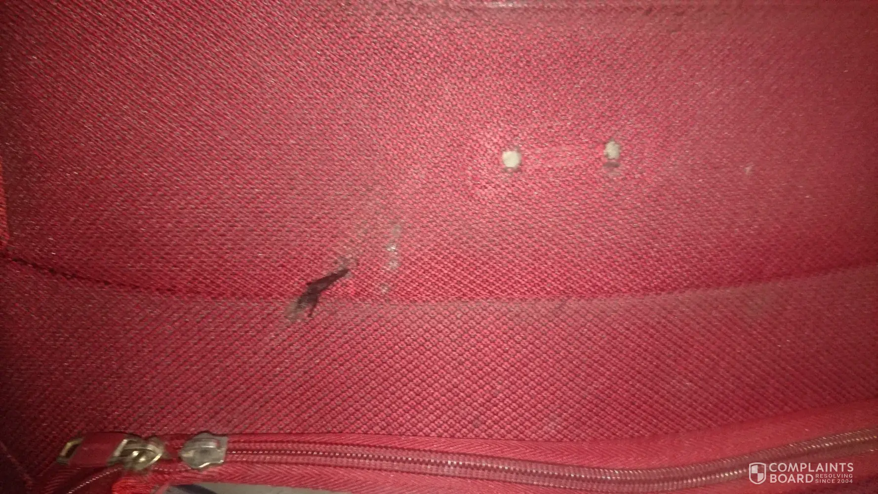 Secondly, on 12/04 when I received the bag it was completely damaged. Handle wheel material everything broken in the suitcase. All luggage inside was in pieces, liquid bottles broken, all my clothes are soaked in oil and all food packets were broken and mixed with each other. The bag was completely ripped. All gifts everything I bought was in pieces.