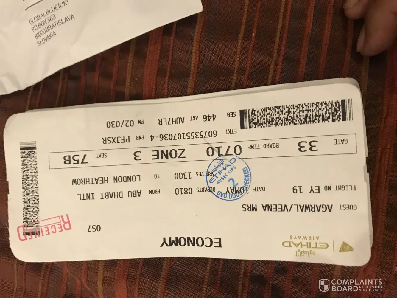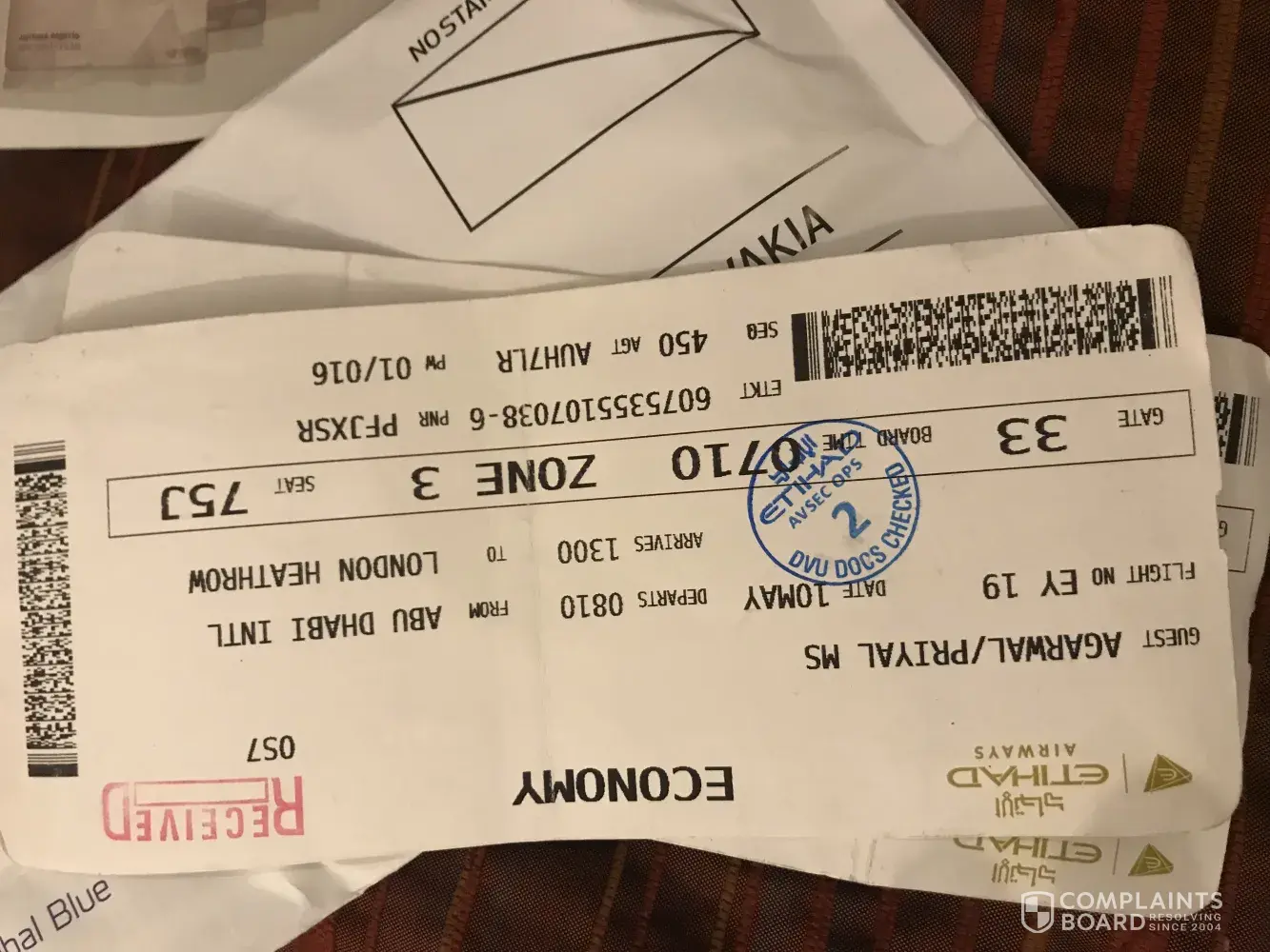 I (Meenakshi Manglani) and my daughter (aged 7 years) had travelled from Hyderabad to London (via Abu Dabhi) by Eithad Airways on 28th April 2018.