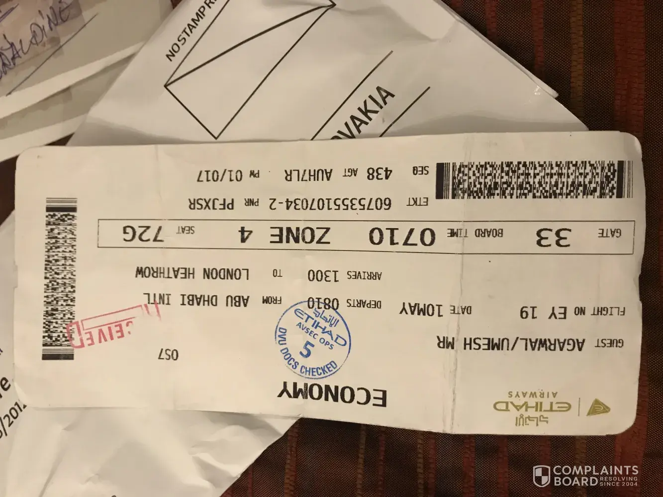 Myself Girish Ramankutty had travelled on 30 April 2018 Delhi to Abu Dhabi EY 229.