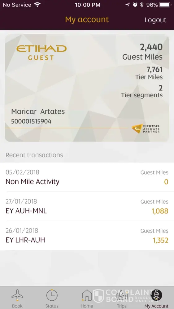 I understand if the latest set of flights back to manila is not credit but for the earlier sets of flights it should not be the case. Ive emailed them and they claim that the miles is already updated and credited to my account but neither my pal (which they claim where it is credited) nor my etihad membership is updated.