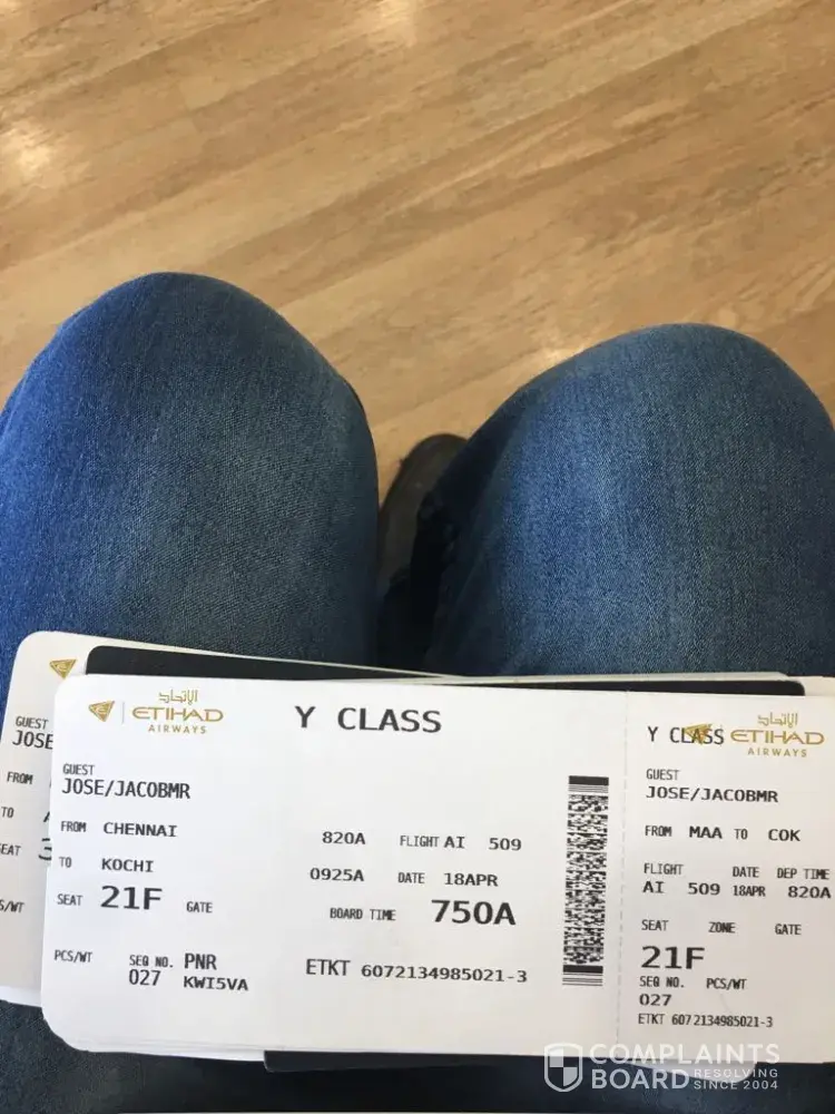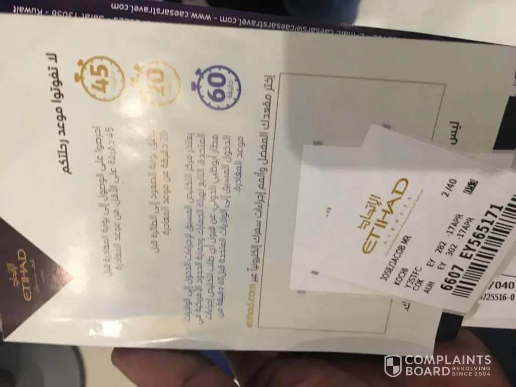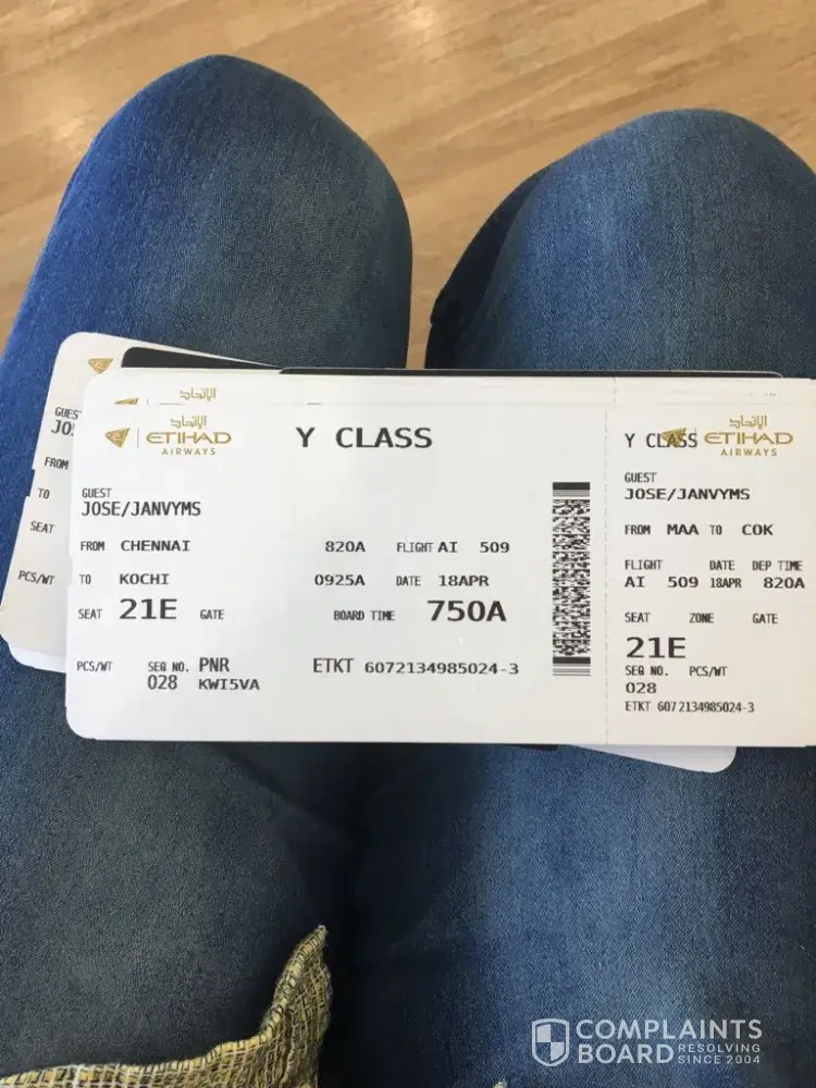 We both received the boarding pass 18/4/18 at 7.45am to fly way Abudabi to Cochi then after 9.30am they announced that the flight is cancelled and another flight will b 4.20pm that also kwt-Abu-Chennault-Cochin. And it will be reach at Cochin by tomorrow 11am. How horrible it is we are traveling for very urgent some banking documentation how can we tolerate this kind irresponsible so cruel it is our 2days is going to waste we want the competitive from the Airlines